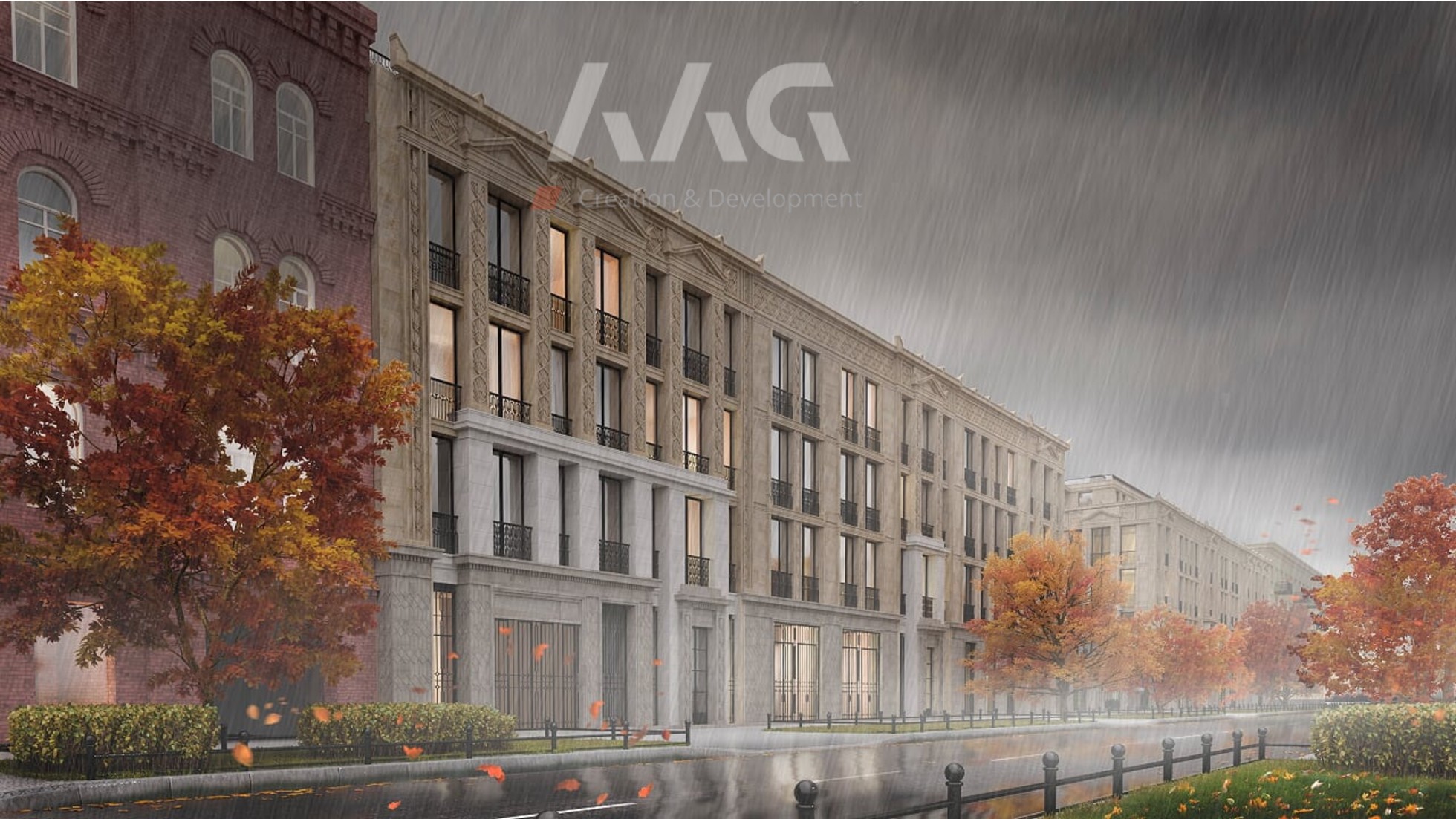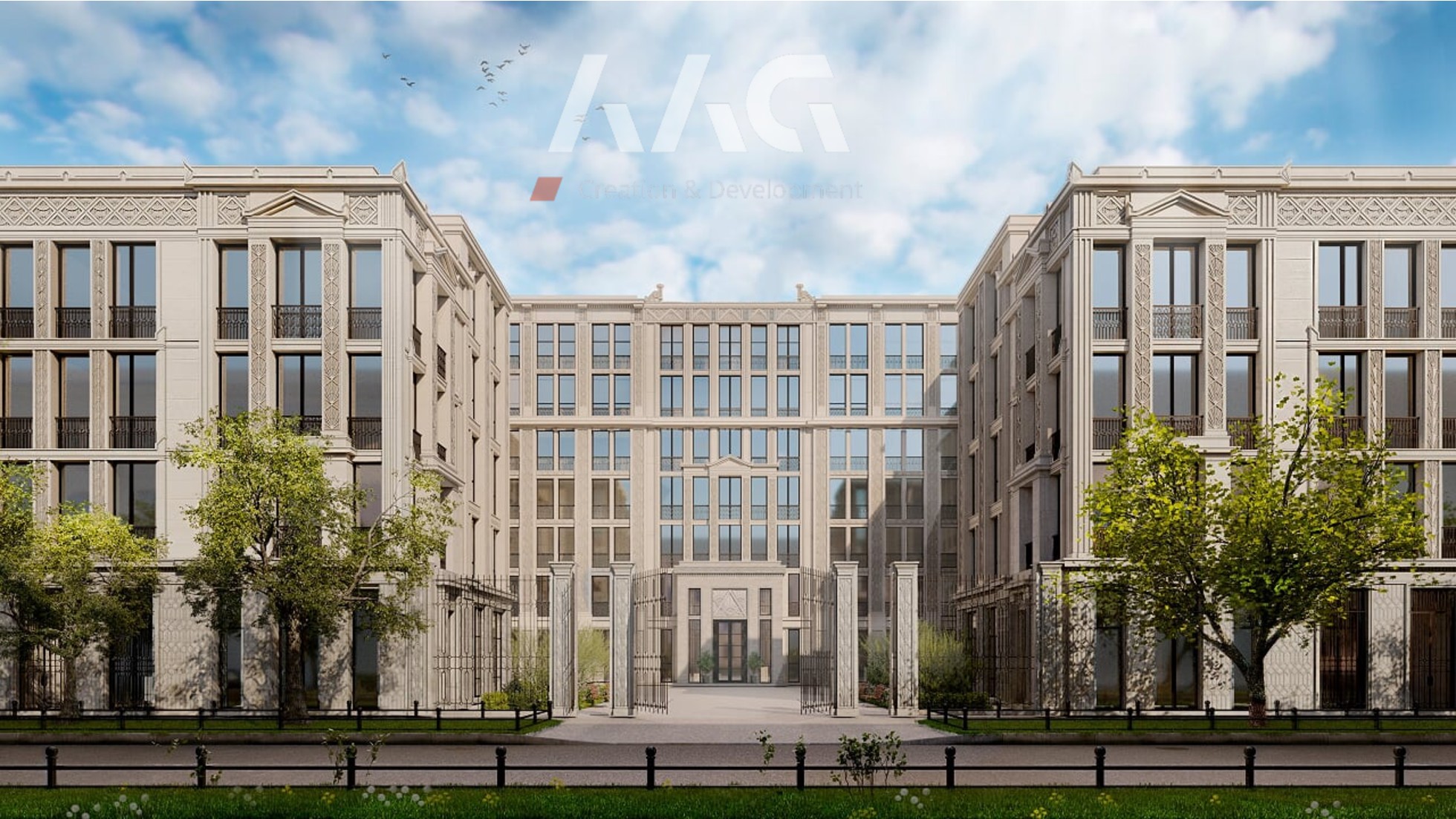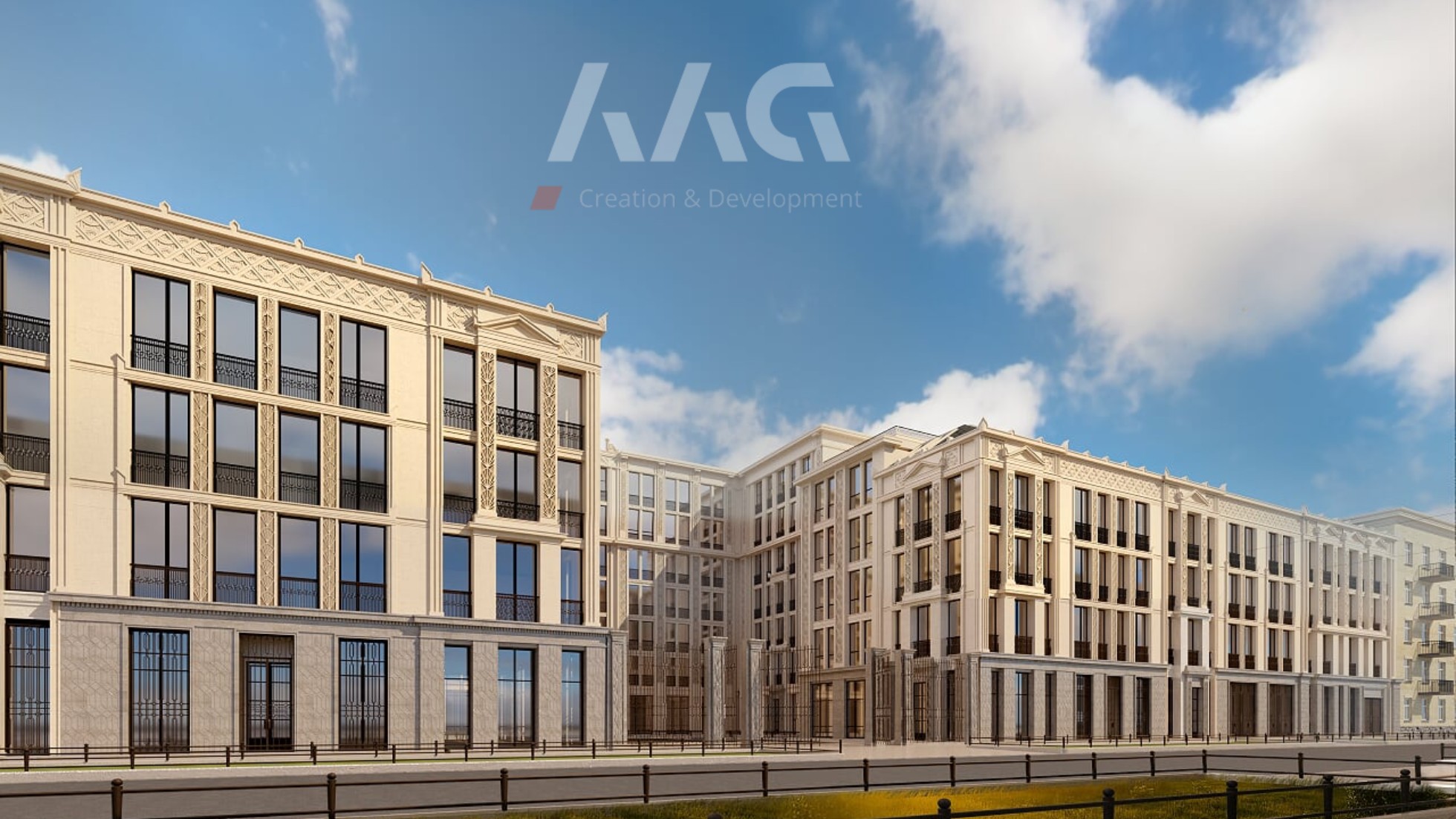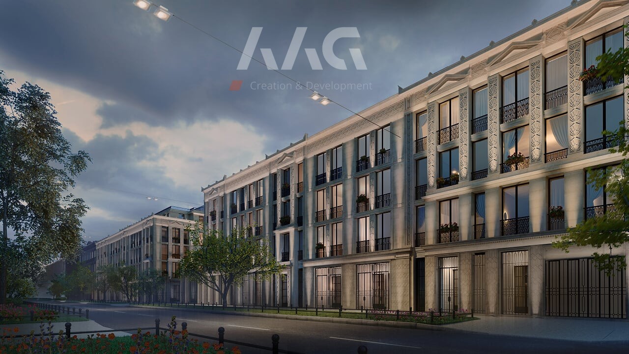 в строительстве. Строгие и стройные фасады, выдержанные  в стилистике ар-деко, декорированы лепными фризами, орнаментами и пилястрами. Сочетание лаконичной геометрии внешнего облика